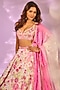 Featuring an ivory and pink lehenga in crystal fabric base with floral print and cutdana hand embroidery. It is paired with a printed and embroidered blouse, including a dupatta. Accentuate it with meenakari jewellery and heels for festive celebrations or daytime weddings.