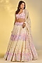 Featuring a yellow lehenga in double georgette base with floral print, cutdana and crystal hand embroidery. It is paired with a printed and embroidered blouse, including a dupatta. Accentuate it with meenakari jewellery and heels for festive celebrations or haldi ceremony.