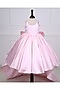 Featuring a baby pink gown for girls in imported satin base. It is paired with a trail and a bow. Style it with cute hair accessories and sandals for a wedding or festive occasion.