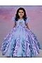 Featuring a sky blue gown for girls in net and satin base with attached sleeves trail and embroidery. Style it with cute hair accessories and sandals for a wedding or festive occasion.