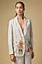 Featuring a beige blazer in pure linen base with embroidery. Accentuate it with shorts minimal jewellery and heels for a complete look.