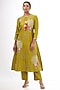 Featuring a green kurta in chanderi base with resham, applique and thread work. It is paired with pants. Accentuate with statement jewellery and heels for a festive occasion or mehendi ceremony.