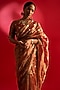 Featuring a red saree in tissue base. It is paired with an embroidered unstitched blouse piece. Accentuate it with traditional gold jhumkas, a textured potli bag and classic heels for a stylish ensemble, ideal for festive gatherings, cultural celebrations or evening functions.