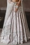 Matsya features a mesmerizing Baby Pink Lehenga Set that captivates with its elegance. The eye-catching lehenga is crafted in raw silk with dabka, nakshi, swarovski, crystal and mirror hand embroidery. It is paired with an embroidered blouse, a net dupatta and a veil. Accentuate the designer lehenga set with statement jewellery and heels for a bridal look.
