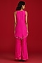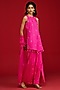 Featuring a hot pink sleeveless kurta in habutai silk and pure organza base with hand embroidery. It is paired with bell-bottom pants and a dupatta. Accentuate it with dangler earrings and mules for festive gatherings, pooja ceremony or daytime functions.