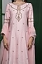 Featuring a light pink kurta in katan silk base with hand embroidery. It is paired with pants and an organza dupatta. Accentuate it with dangler earrings and block heels for festive occasions or weddings.