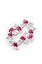 Featuring a pair of white rhodium finish stud earrings studded with silver and ruby stones, set in brass. It has E-coating. Add a touch of sparkle to your ensemble, perfect for evening soirees, date nights or cocktail parties.