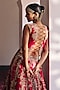 Mrunalini Rao presents a red lehenga in pure silk base with zardosi and pearl hand embroidery. It is paired with a hand embroidered waistcoat having a back tie-up and an organza dupatta. Elevate your designer lehenga set with bold jewelry and stylish heels for a stunning stunning bridal look.