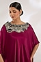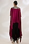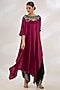 Featuring a burgundy off-shoulder singlet top in satin base with sequins, thread, kantha, threadwork, beads and fringe hand embroidery. It is paired with black satin draped pants. Accentuate it with elegant earrings and heels for a stylish ensemble, ideal for festive dinners, cocktail gatherings or evening celebrations.
