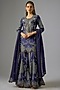 Featuring a navy kurta in crepe base with sequins and thread hand embroidery, including kantha, fringes and bead work. It is paired with sharara pants and a georgette dupatta. Accentuate it with statement earrings and heels for festive occasions or wedding ceremonies.