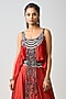 Nupur Kanoi features a mesmerizing Rust-Orange Co-Ord Set that captivates with its elegance. The eye-catching single top set is crafted in silk and satin with hand embroidery. It is paired with circular pants. Style this set with statement jewelry and heels for a regal look, ideal for any festive occasion or sangeet ceremony.