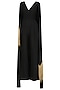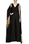 Featuring a black cape jumpsuit in cady base with fringes embellishment in chevron pattern on the cape.