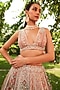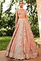 Featuring a coral lehenga in organza base with embroidery. It is paired with a blouse and a dupatta. Accentuate it with statement jewellery and heels for festive occasions, sangeet or wedding ceremonies.