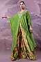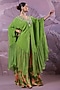Featuring an avocado green tiered kaftan in summer silk base with gota-patti hand embroidery. It is paired with silk blend wide-leg printed pants. Style it with pearl or kundan jewellery and soft glam makeup for a graceful finish, Perfect for festive celebrations, mehendi functions, or intimate wedding ceremonies.
