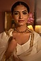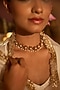 Featuring an antique gold finish lotus choker necklace studded with pearls, set in brass. This necklace beautifully unites elegance in a wearable work of art, making it a statement piece for any occasion.