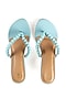 Ice Blue Faux Leather Cutdana Hand Embroidered Heels