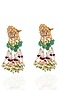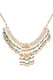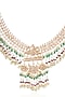 "Featuring a 24 kt gold plated necklace studded with green onyx and pearls, set in brass. It is paired with a matching pair of earrings. Perfect for grand occasions like weddings and traditional festivities.