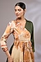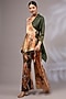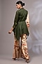 Featuring a green kimono top in modal silk base with digital print. It is paired with pants. Style it with statement earrings and block heels, perfect for evening soirees.