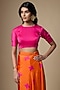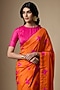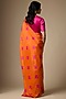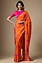 Featuring an orange and pink saree in pure habutai silk base with print. It is paired with an unstitched blouse piece. Accentuate it with sleek gold jewellery and elegant heels for a refined ensemble, ideal for sangeet ceremonies or elegant dinner gatherings.