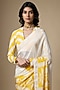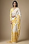 White & Yellow Pure Habutai Silk Printed Saree Set