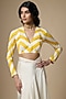 Featuring a white and yellow saree in pure habutai silk base with mughal inspired print. It is paired with an unstitched striped blouse piece. Accentuate it with sleek gold jewellery and elegant heels for a refined ensemble, ideal for haldi ceremonies.