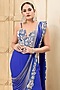 Featuring a royal blue draped saree in georgette base with an attached pallu and embroidery. It is paired with an embroidered silk dupion bustier. Accentuate it with statement jewellery and metallic heels for a glamorous look, perfect for cocktail parties, evening receptions or festive celebrations.