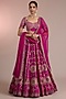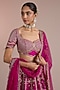 Featuring a fuchsia lehenga in raw silk base with embroidery. It is paired with an embroidered blouse and a net embroidered dupatta. Accentuate the designer lehenga with pearl or swarovski jewellery, embellished heels and a potli bag for a bridal look, Perfect for wedding, sangeet or engagement ceremony.