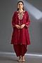 Featuring a red kurta in habutai silk base. It is paired with pants. Accentuate it with statement jewellery and heels for any festive occasion or sangeet ceremony.
