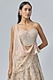 Featuring a rose gold lehenga in tissue base with embroidery. It is paired with a tissue blouse having an attached net drape. Accentuate it with jewellery set and heels for a refined ensemble, ideal for a bridal look.