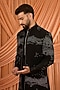 Featuring a black indowestern in velvet base. It is paired with a kurta and pants. Style it with mules for a festive occasion, reception, wedding, sangeet or engagement ceremony.