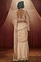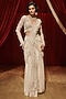 Featuring an ivory draped saree in net base with hand embellishment. It is paired with a net embellished blouse. Accentuate it with emerald or pearl jewellery, embellished heels and a potli bag for a wedding or engagement ceremony.