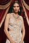 Featuring an ivory lehenga in shimmer georgette base with floral motif, sequins and beads hand embellishment. It is paired with a net embellished blouse having a sweetheart neckline and a net embellished drape. Accentuate it with polki or zircon jewellery, embellished heels and a potli bag for a bridal look. Perfect wear for your engagement or wedding ceremony.