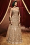 Featuring a rose gold lehenga in net base with embellishments. It is paired with an embellished bustier, an embellished corset and an embellished dupatta. Accentuate it with swarovski or zircon jewellery, embellished heels and a potli bag for a bridal look. Perfect wear for your engagement or wedding ceremony.