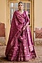 Featuring a berry pink lehenga in premium vegan silk base with kalamkari weaves and kashmiri zari work. It is paired with a blouse and a pair of dupattas. Accentuate it with kundan polki or silver jewellery and block heels for a wedding or engagement ceremony.
