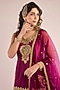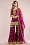Featuring a royal purple A-line kurta in chanderi base with gota patti embroidery. It is paired with gharara and an organza dupatta. Accentuate it with statement earrings, a sleek braid, and metallic heels, ideal for sangeet ceremonies or weddings.