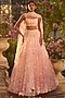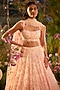 Seema Gujral features a candy pink lehenga in net base with 3D tonal sequins and beads embroidery. It is paired with an embroidered strappy blouse and a sheer net embroidered dupatta. Style this designer lehenga with silver or pearl jewellery, soft curls, embellished heels and a clutch for a bridal look. Perfect wear for your cocktail or sangeet ceremony.