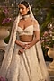 Seema Gujral features an ivory lehenga in net base with sequins, pearls, and crystal embroidery. It is paired with an off-shoulder embroidered drape blouse and an embroidered dupatta. Style this designer lehenga with emerald or ruby jewellery, soft curls, embellished heels and a clutch for a bridal look. Perfect wear for your wedding or reception ceremony.