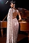 Nude Georgette Crystal Embroidered Saree Set