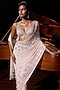 Elevate your style with this luxurious nude saree by Seema Gujral. The saree is crafted from georgette; it is adorned with crystal embroidery in a floral pattern. The saree is paired with an embroidered blouse featuring side cut detailing and an open back. The saree set includes an underskirt. Style this luxurious saree with polki jewellery, a sleek bun and minimal makeup for a perfect, classy look.