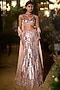 Rose Gold Net Crystal & Sequin Flared Slit Skirt Set