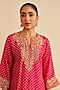 Sheetal Batra presents a hot pink long kaftan in pure upada silk base with a zero neckline, sequins, aari and tilla embroidery. It is paired with dogri salwar pants. Style with kundan jhumkas, soft curls, and dewy makeup for an elegant ethnic vibe, perfect for raksha bandhan celebrations or intimate festive dinners.