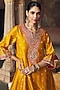 Mustard Silk Chanderi Banarasi Gota Patti Embroidered Kurta Set For Girls