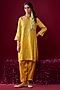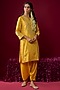 Featuring a mustard yellow kurta crafted in upada silk fabric with a zero neckline, aari tilla embroidery, gota edges, delicate pearls, and sequins. It is paired with salwar. Accentuate it with polki jewellery, a potli bag, and wedges for festive occasions, haldi and wedding ceremonies.