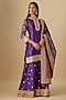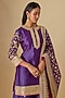 Featuring a purple kurta in silk chanderi base with gota patti, dabka and zardosi hand embroidery. It is paired with kalidar sharara pants and a dupatta. Accentuate it with statement jhumkas and heels for a festive occasion, weddings or family gatherings.