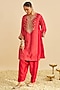 Red Pure Upada Silk Gota Embroidered Kurta Set