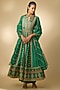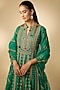 Featuring a bottle green anarkali in vegan silk base with hand embellishments. It is paired with pants and organza dupatta. Style it with kundan polki earrings and block heels for festive gatherings or mehendi ceremony.