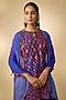 Featuring a purple kurta in slub silk base with resham embroidery. It is paired with printed dhoti and a scarf. Style it with kundan polki earrings and block heels for festive gatherings or pooja ceremony.