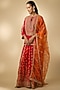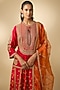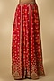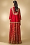 Featuring a red top in slub silk base with embroidery. It is paired with patola printed and embroidered flared palazzo and an organza embroidered dupatta. Style it with kundan polki earrings and block heels for festive occasions or sangeet functions.
