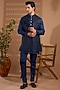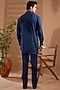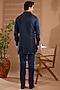Featuring a blue sleeveless jacket in blended silk base with embroidery. It is paired with a cotton satin kurta and pants. Style it with mojaris for a reception, wedding, sangeet or engagement ceremony.