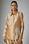 Featuring a beige shirt in kora silk base with mirror work. It is paired with pants and an inner. Accentuate it with statement earrings and embroidered juttis for a timeless, elegant look. Ideal for formal lunches or intimate celebrations.